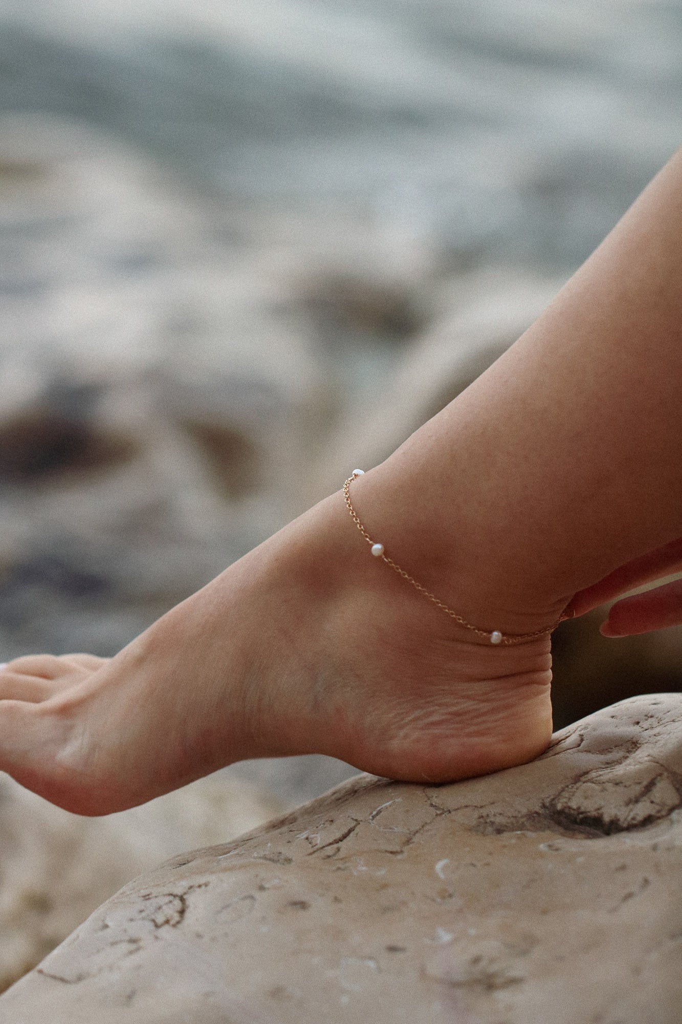 Ponctuée de perles d'eau douce, notre chaîne de cheville Manon est l’accessoire idéal pour l’été, ajoutant une touche d’élégance à vos journées ensoleillées.