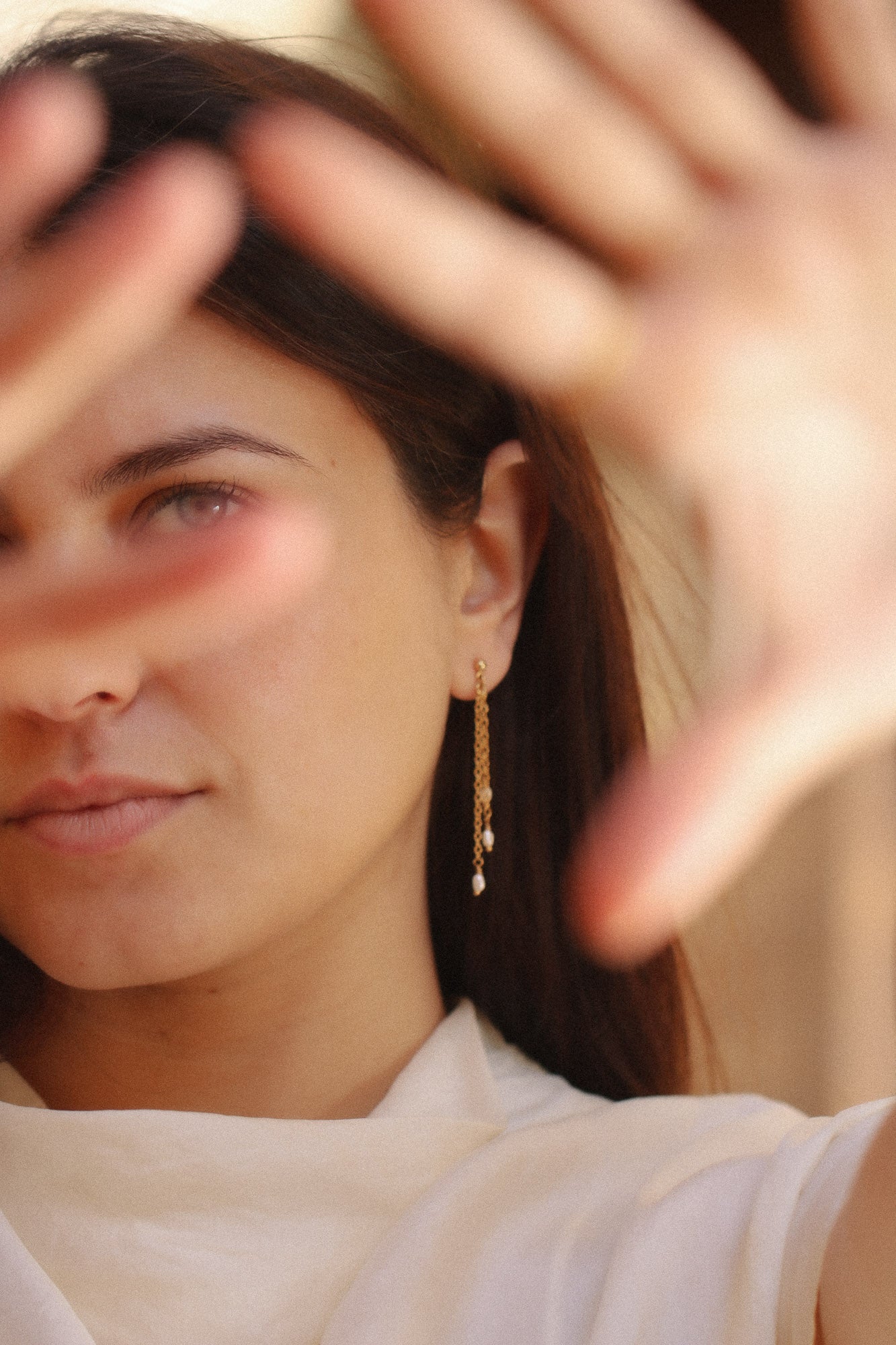 De fines chaînes dorées ponctuées de perles d’eau douce composent cette boucle légère et délicate. Elle capte joliment la lumière et apporte une touche élégante.