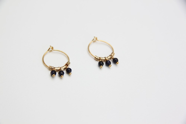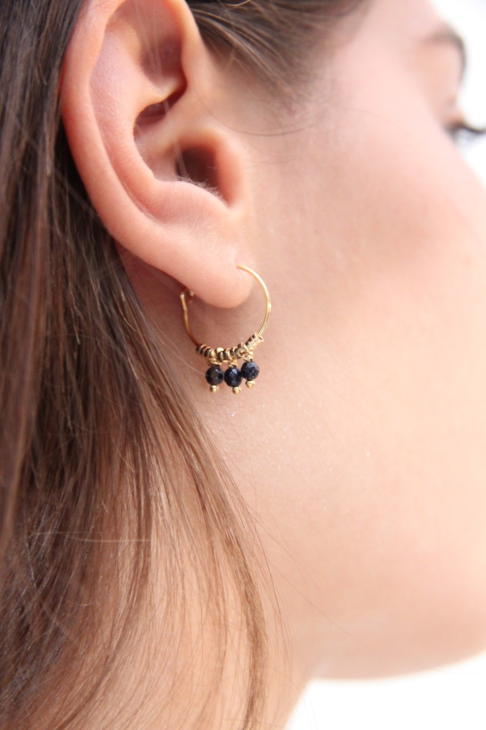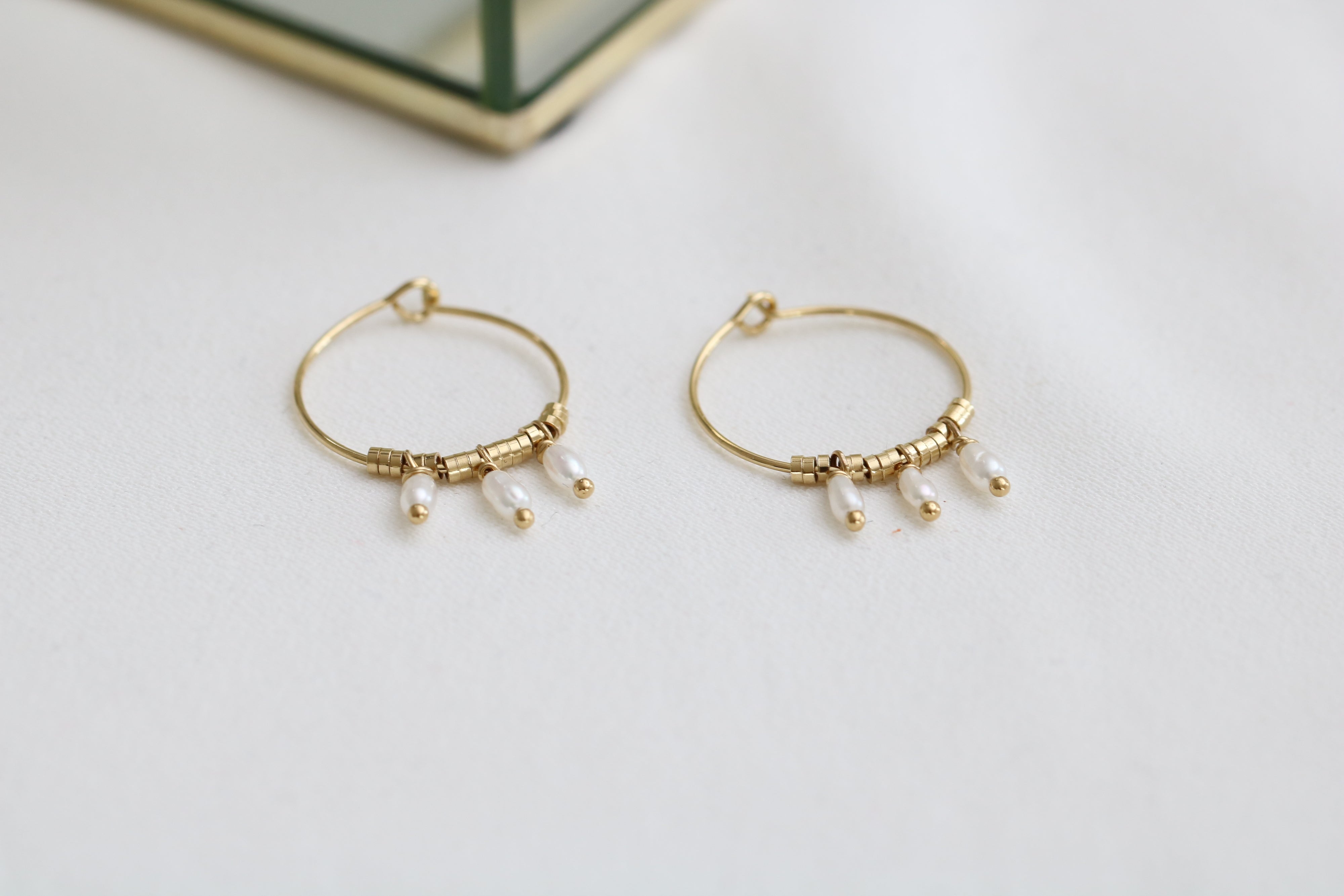 Les créoles little Lola sont se distinguent par leur taille plus petite que sa grande soeur. Elles sont composées d’une créole de 15 mm de diamètre et de 3 pierres fines (disponibles en plusieurs coloris) ou de 3 perles d’eau douce.