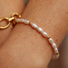 Des perles d’eau douce au fini nacré, ponctuées de petites perles dorées. Un bijou fin et délicat, à la fois intemporel et lumineux, à porter seul ou en accumulation.