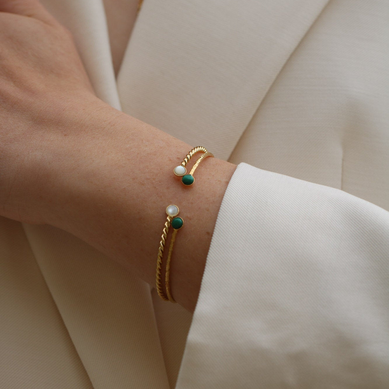 Look vintage et élégant à la fois pour ce jonc Camille pierres fines orné de véritables pierres fines.