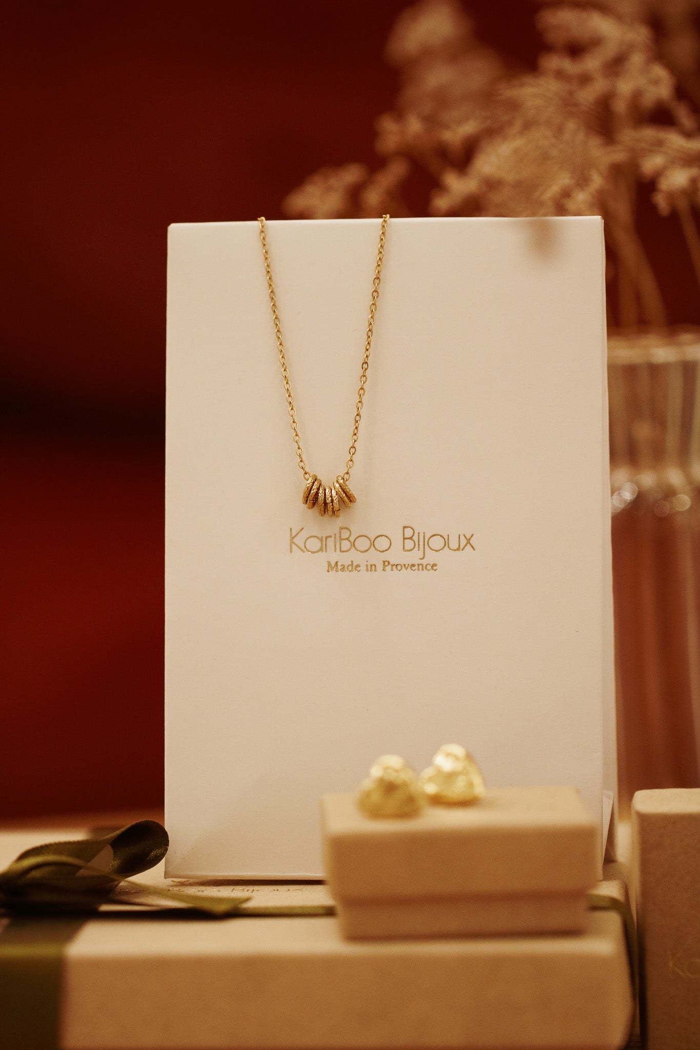 Chez KariBoo Bijoux, chaque pièce est imaginée et façonnée à la main dans notre atelier de Salon-de-Provence. Conçus en laiton recyclé doré à l’or 24 carats, certifié RJC, nos bijoux incarnent un équilibre subtil entre élégance et éthique. Fidèles à notre engagement pour l’artisanat français et la durabilité, nous créons des pièces intemporelles, pensées pour durer.